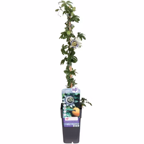 Skapa en exotisk och färgsprakande atmosfär i din trädgård eller på balkongen med Passiflora caerulea, även kallad blå passionsblomma. Denna snabbväxande klätterväxt pryds av unika, stjärnformade blommor i vitt, blått och lila – ett riktigt blickfång!