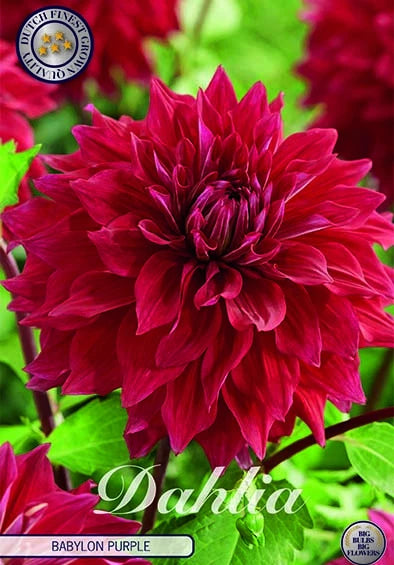 Babylon Purple är en av de mest iögonfallande dahliorna med enorma, tätt fyllda blommor i intensiv röd färg.