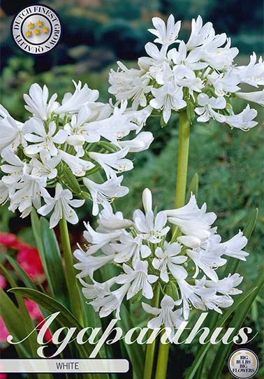 Agapanthus White är en elegant sort som bjuder på stora, snövita blomklasar med ren och klassisk karaktär.