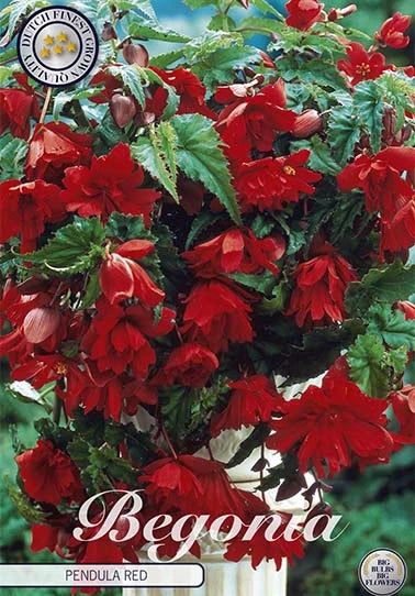 Pendula Red är en hängbegonia med kaskader av röda blommor som faller mjukt över kanter.