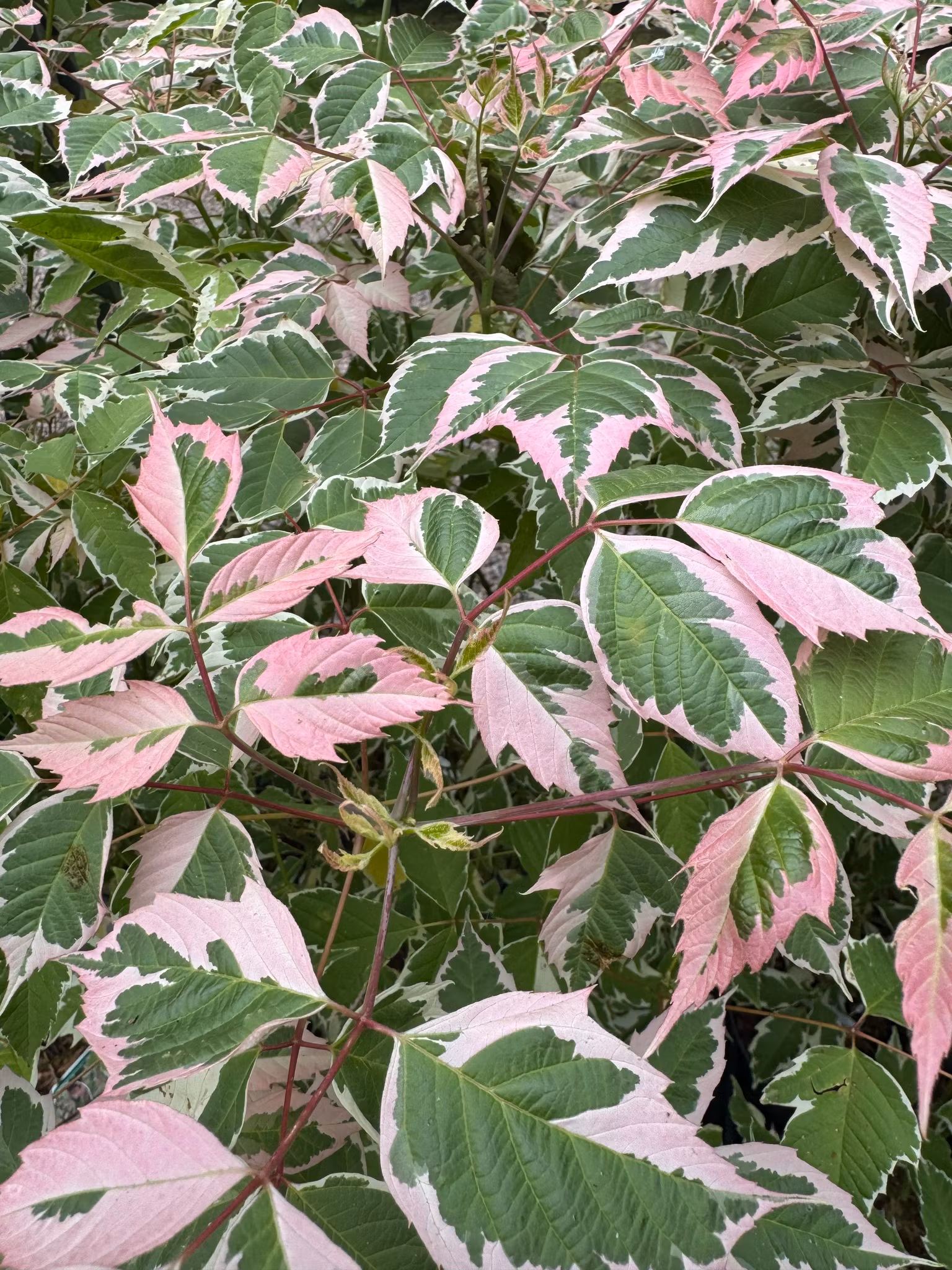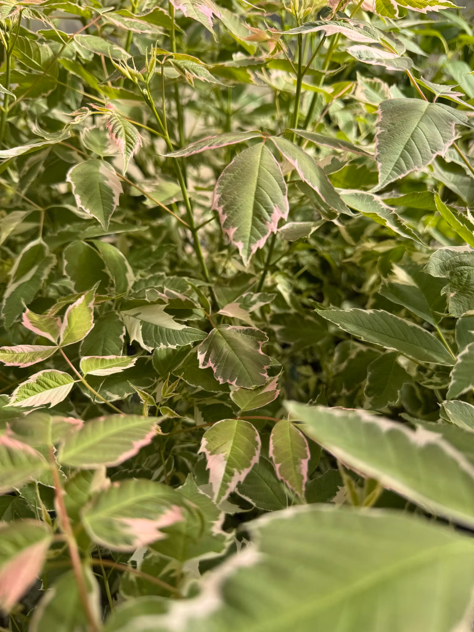 ✔ Bladverk: Flammigt bladverk i nyanser av rosa, vitt och grönt, som skiftar i färg under hela växtsäsongen och får en fantastisk höstfärg i röd-orange