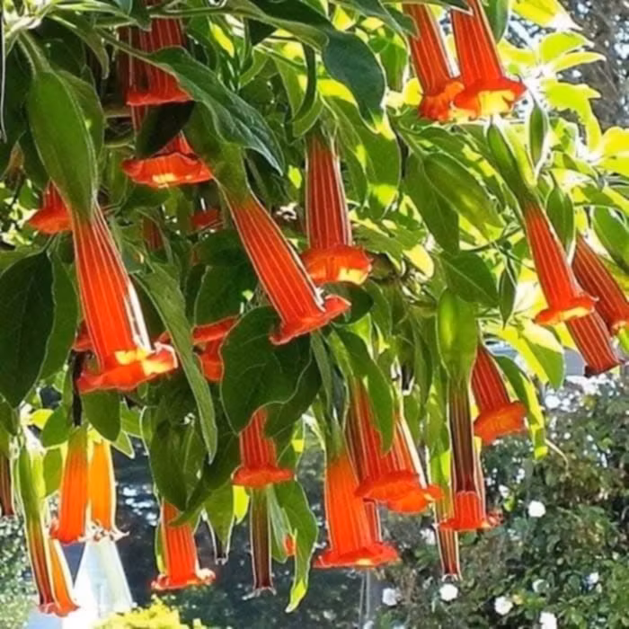 Upplev en av de mest fascinerande och färgstarka änglatrumpeterna med Brugmansia Sanguinea. Denna imponerande växt är känd för sina stora, trumpetformade blommor i en djup, blodröd nyans som verkligen står ut i din trädgård eller på din balkong. Blommorna är både dramatiska och doftande, vilket gör denna sort till en perfekt prydnad för den som vill ha en växt med både skönhet och karaktär.