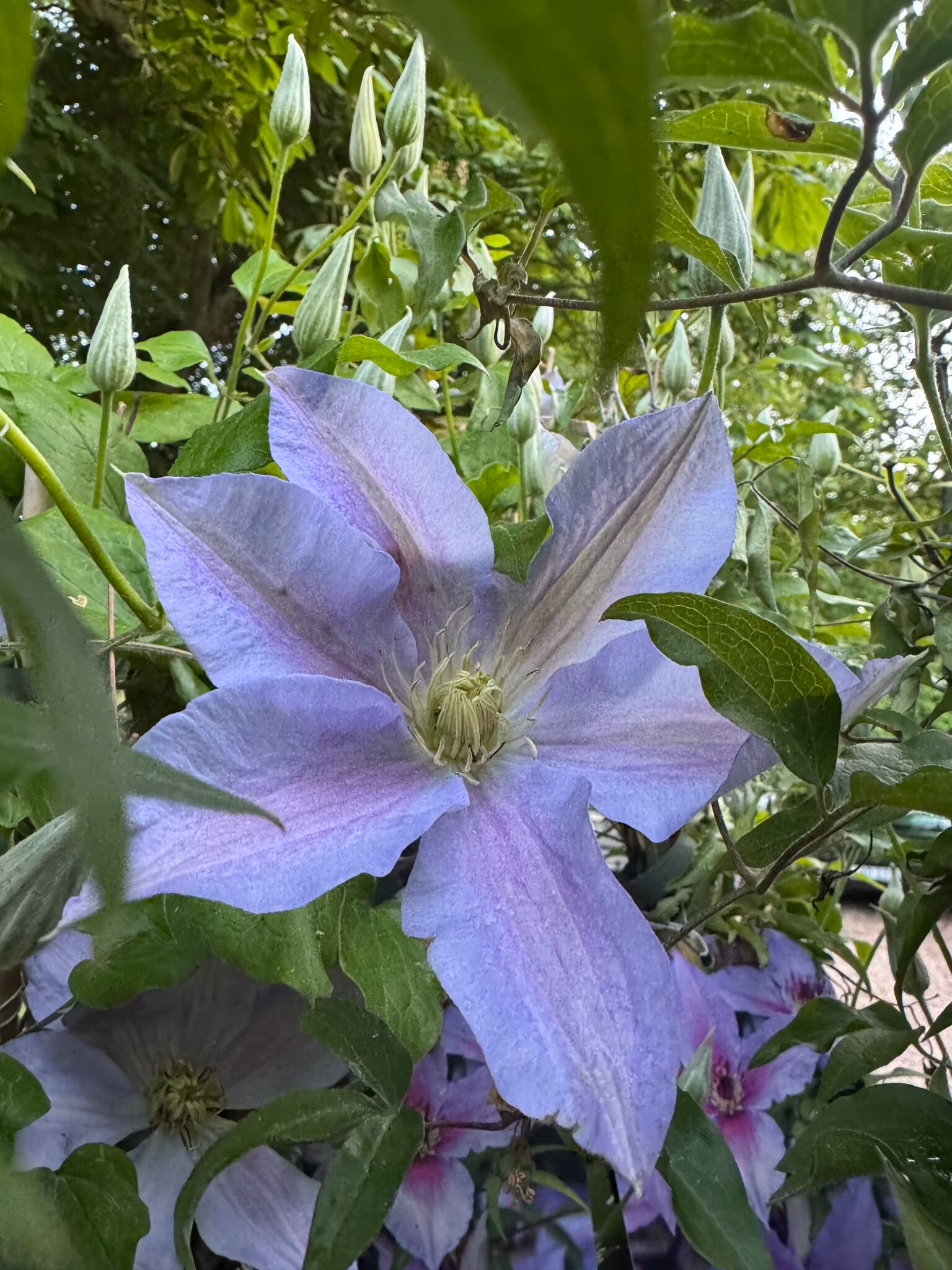 Clematis 'Spotlight' är en nyare och mycket uppskattad sort som gör skäl för sitt namn. Den blommar med stora, vita till gräddvita blommor med lätt vågade kronblad och kontrasterande gul mitt – som små spotlightstrålar i trädgården. Den blommar under sommaren, ofta i flera omgångar, och är en verklig blickfångare mot murar, pergolor eller spaljéer.