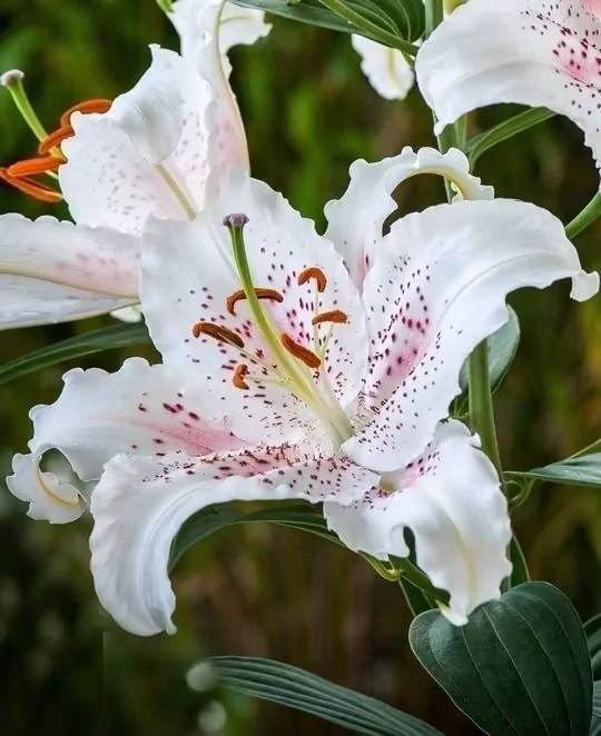 Liljan Muscadet är en ljuvligt romantisk blomma som förtrollar med sina stora, vitglänsande kronblad prydda med subtila rosa strimmor och stänk av djupare färg. Dess sofistikerade utseende, kombinerat med en berusande söt doft, gör den till ett perfekt val för eleganta blomsterarrangemang, festliga tillställningar eller som ett utsökt inslag i trädgården.