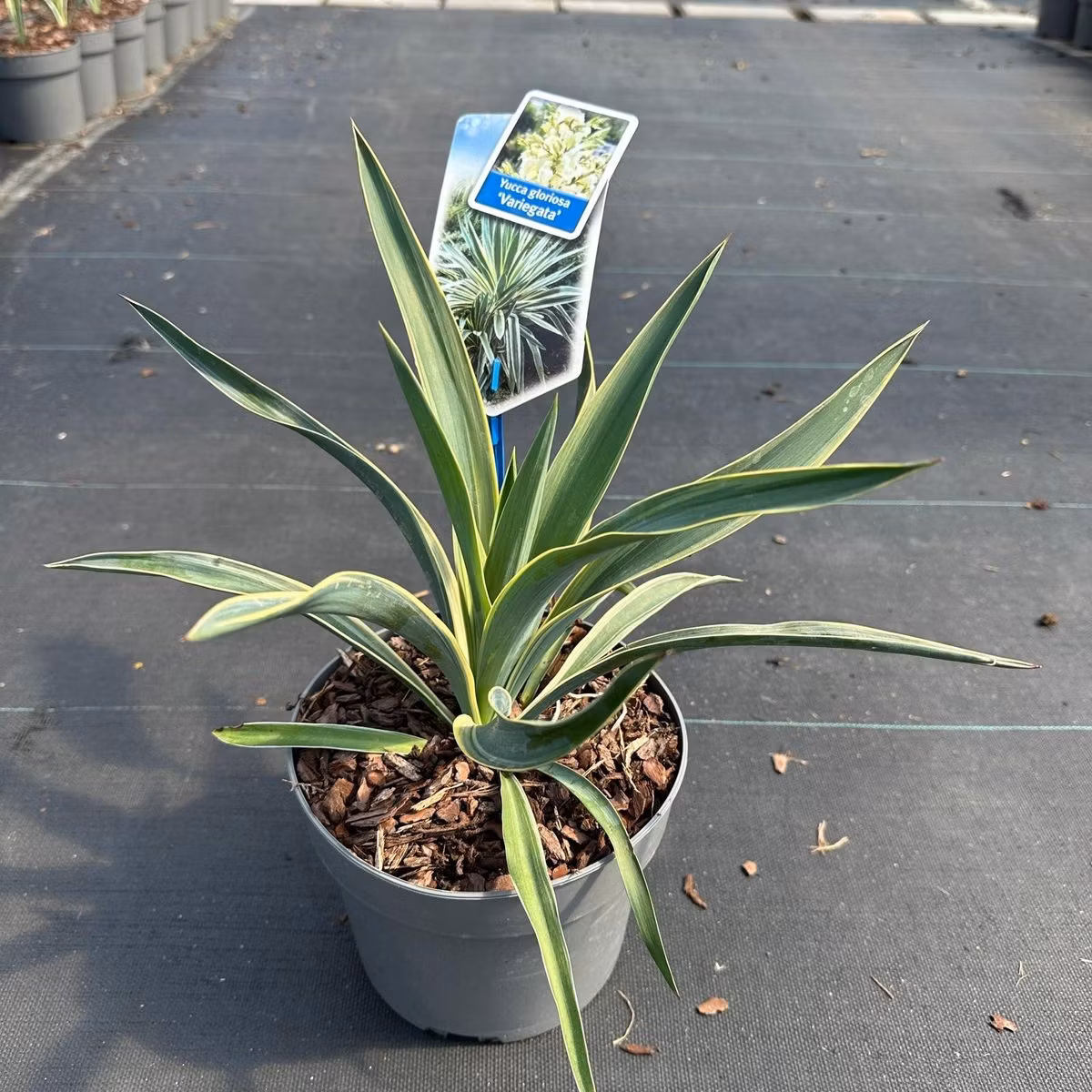 Med sitt eleganta uppresta växtsätt och stora, stela blad, ger Yucca Gloriosa 'Variegata' en stilren och exotisk look, samtidigt som den är oerhört lättskött. Den är perfekt som prydnadsväxt i trädgården, på terrassen eller i större krukor. Den trivs utmärkt i både torra, väldränerade jordar och klarar av de flesta väderförhållanden, vilket gör den till ett hållbart val för många typer av trädgårdar.