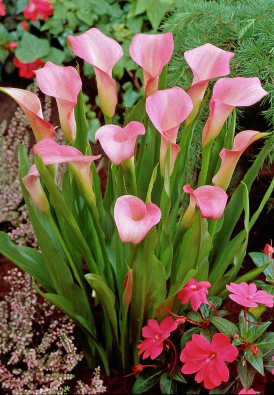 Rehmannii är en klassisk rosafärgad kalla med eleganta trattformade blommor i mjuka nyanser från rosa till djupt purpur.